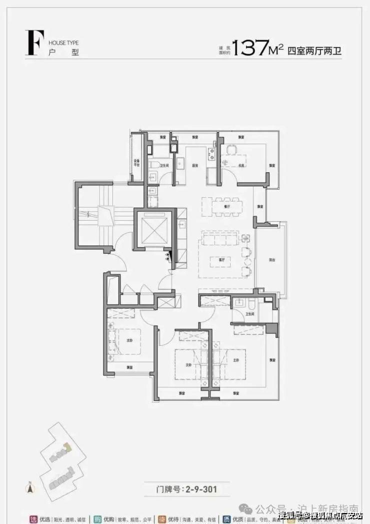 137㎡ 四房两厅两卫:270° 景观,部分户型近36 米玻璃幕墙