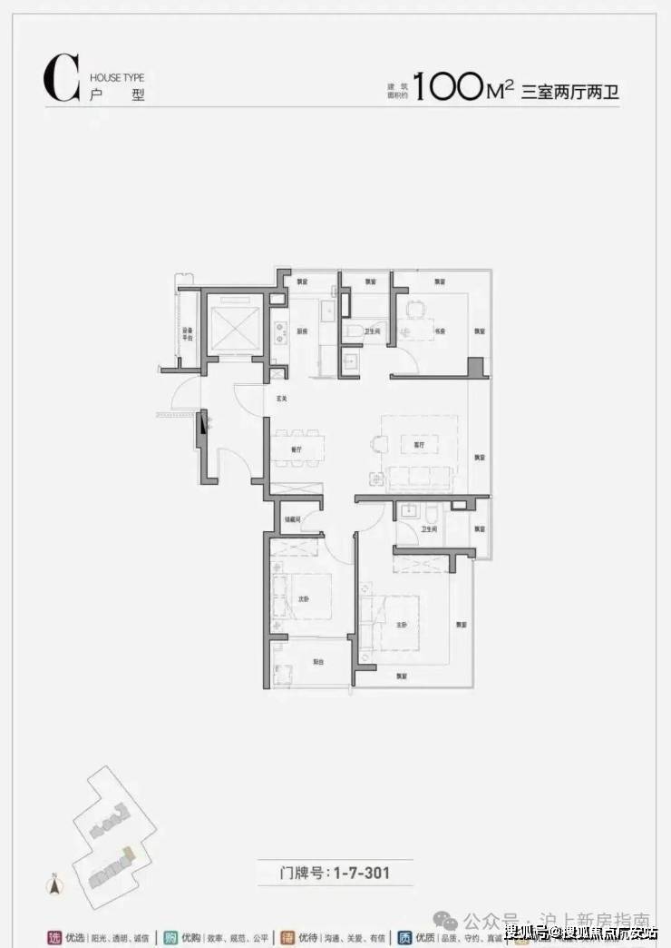 99㎡ 三房两厅两卫:三开间朝南,全屋6 飘窗,总价约1200 万起