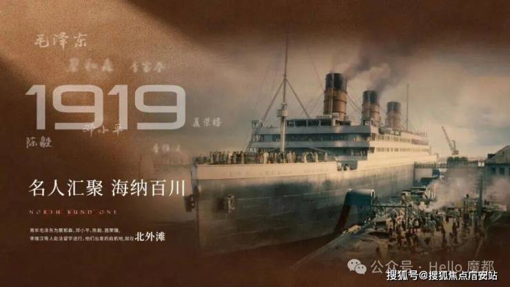 1919年青年毛泽东为蔡和森、邓小平、陈毅、聂荣臻北外滩李维汉等人赴法留学送行,他们出发的启航地,就在北外滩。