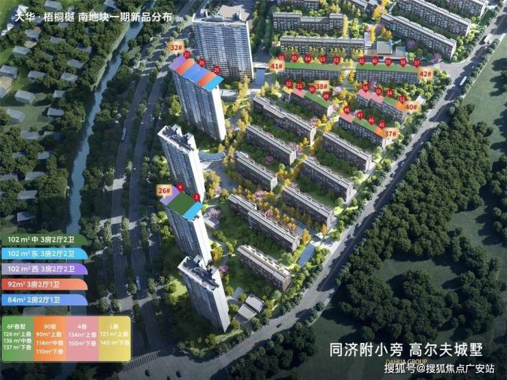 建筑面积约84-101㎡瞰景高层,方正格局,正向朝南,采光性和通风性都非常优秀;动静分离、干湿分离更是不在话下;而且推窗便能看见高尔夫绿洲,视野极为优越!