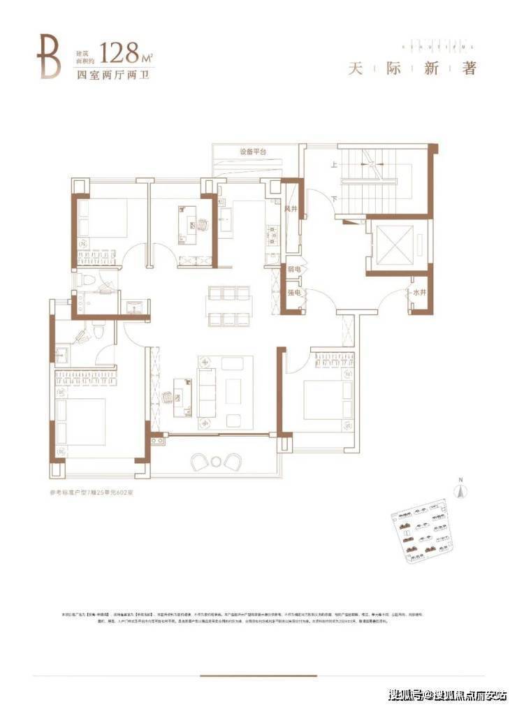 建面约128㎡4房2厅2卫户型