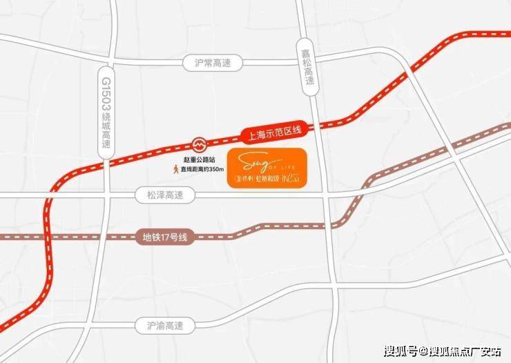 保利虹桥和颂·IN255不仅有轨交规划正在落地,且直线距离示范区线赵重公路站(在建)仅约350米,是不可多得的真轨交盘,2站前湾、3站虹桥枢纽、5站华为基地。