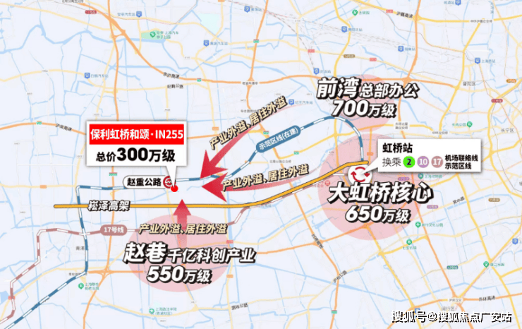但保利虹桥和颂·IN255不一样。一方面得益于示范区线的建设,赵重公路站配套将迎来大升级,站点周围规划了约19万方商办。