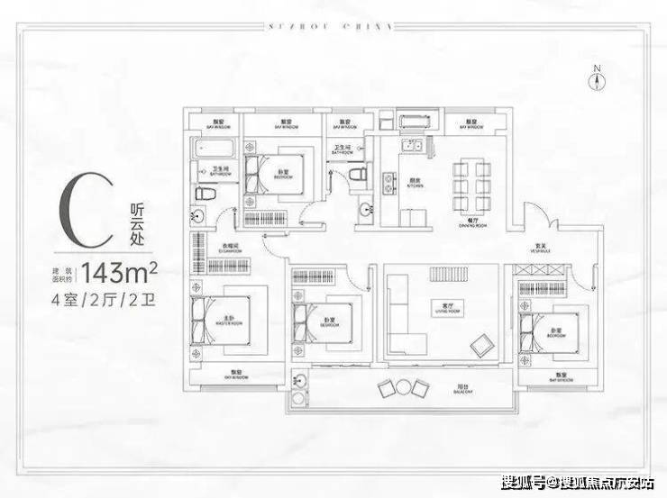 灵动美学:户型方正,南北通透,4房设计,自由多变,追求舒适想象