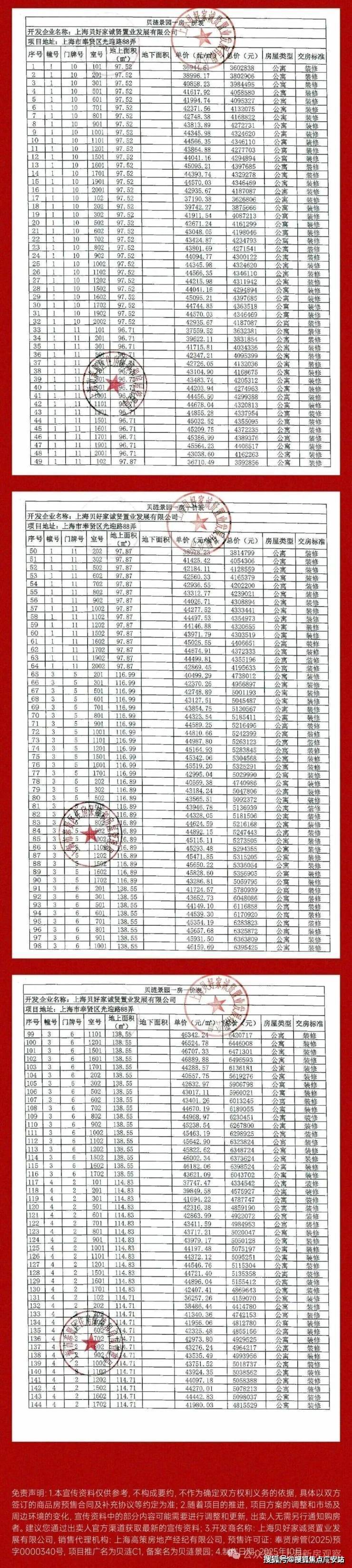 上期一房一价表如下: