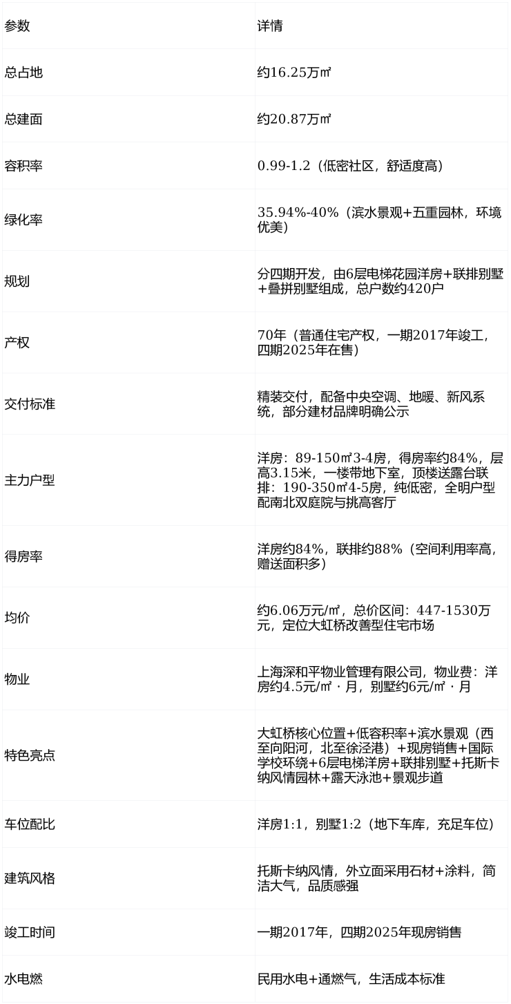 总体而言,该项目依托大虹桥核心区位、低容积率、滨水景观、现房销售与国际学校环绕,是上海大虹桥区域极具性价比的高端改善型住宅项目,适合改善型购房者与投资者入手。