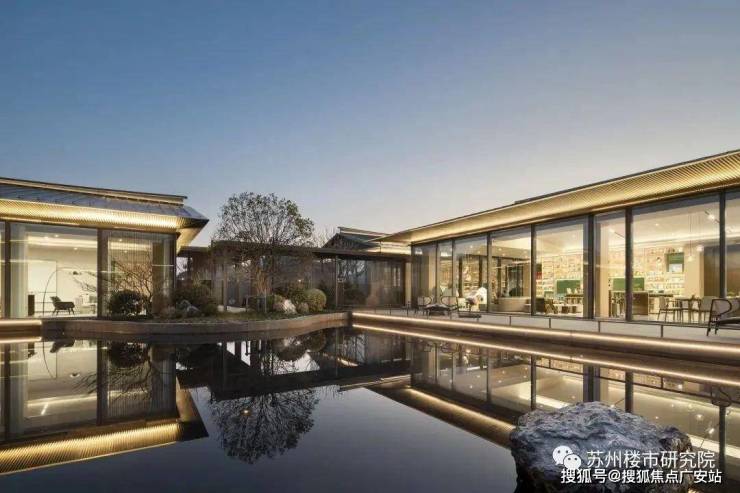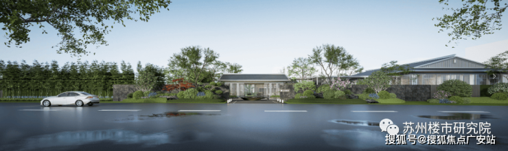以现代手法演绎,汲取苏州园林精粹,构筑“一轴六庭八景”,呈现匍匐在绵延山麓的四季姑苏的居住情景