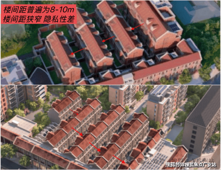 很多市中心低密的风貌别墅,哪怕容积率也在1.2左右,但它们的楼间距并不可观。几乎是在8-10m,宽一点的约12m,楼与楼之间非常紧凑,私密性难以得到保障。