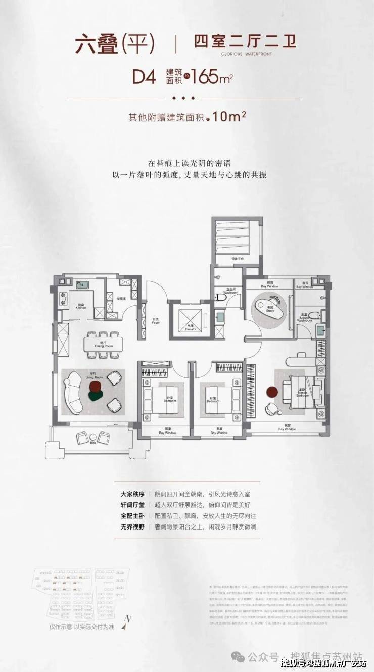 同时,南北两个房间以及主卫均为270°转角飘窗(1-2层除外),主卧套间约21㎡,3.9米的超大面宽,功能齐全——独立4件套卫浴、化妆台、步入衣帽间,尊崇感与舒适度拉满。