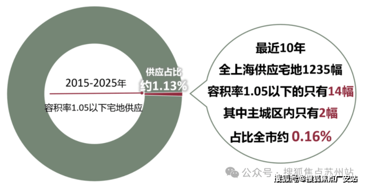 据克而瑞数据统计,2015年-2025年这十年,全上海累计供应1235幅宅地,其中容积率≤1.05的一共只有14块,占比仅约1.13%。更重要的是,这些低密地块绝大多数都地处郊区,主城区的凤毛麟角,仅有2幅!