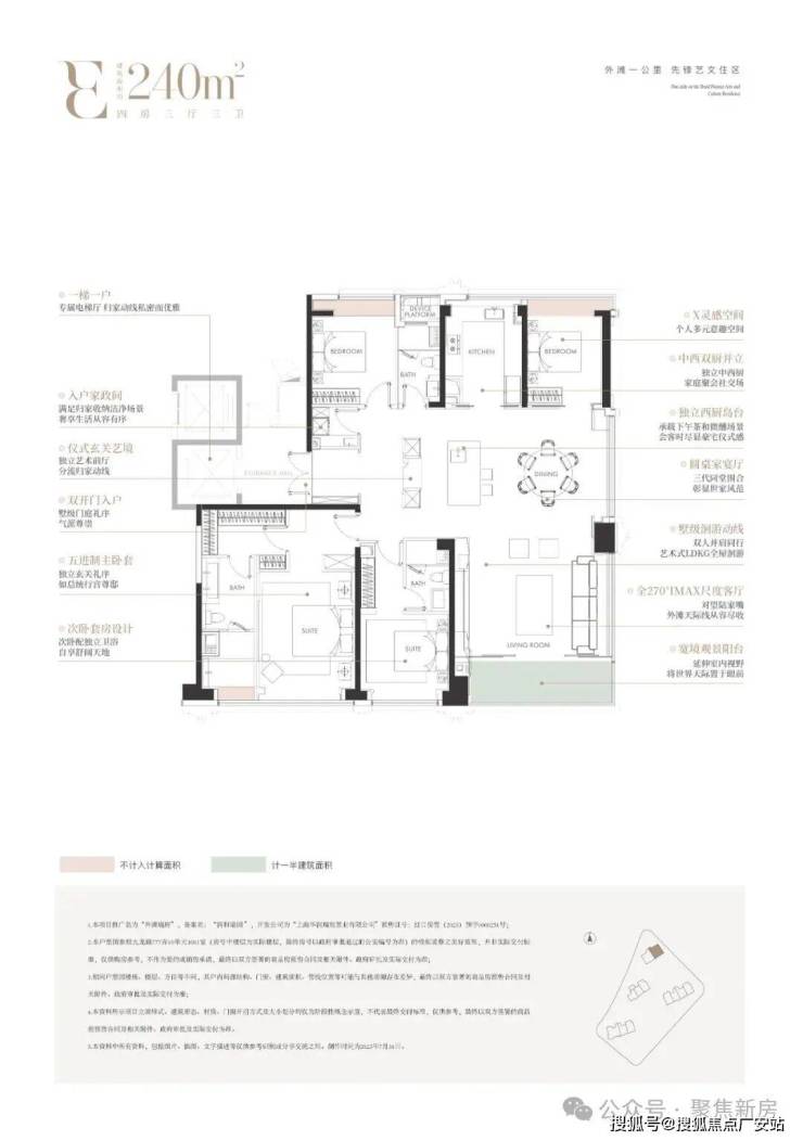 建面约161㎡的奢享四房,则是对改善需求的深刻洞察。其设计更是颠覆性的:全屋四个转角窗构建外滩天际环幕视野,三卧朝南且近乎等面宽的“真四房”设计,实现了家庭成员间的景观平权与舒适平权。酒店式四分离次卫与独立家政空间的设计,更是对生活细节的极致考量。