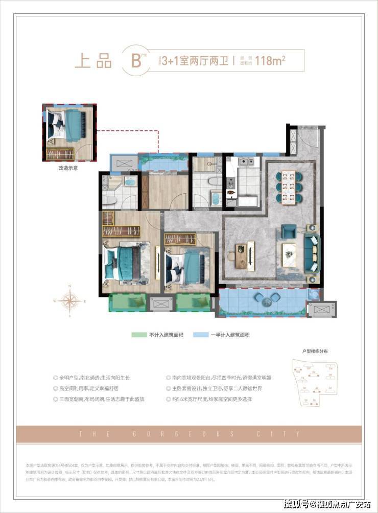 主力户型:93-129㎡的全明格局三居至四居,双阳台设计,南北通透
