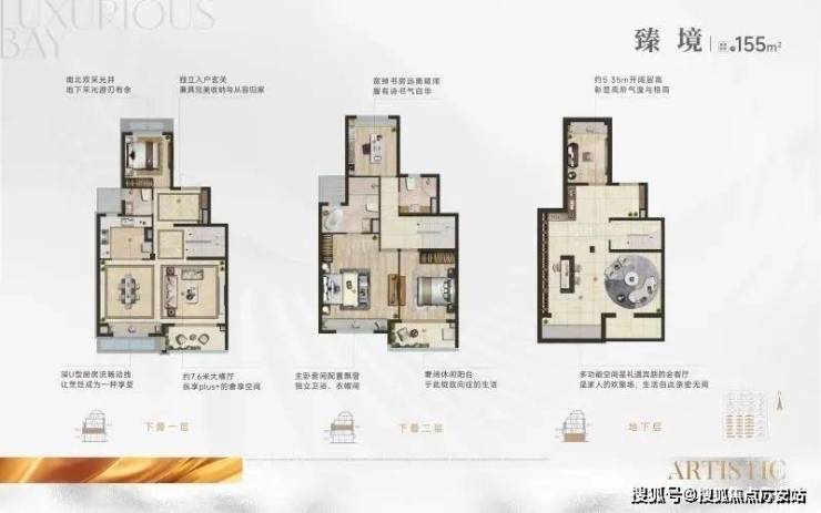 叠墅层高:叠墅1层层高约3.4米,2层层高约3.2米,地下室层高约5.35米