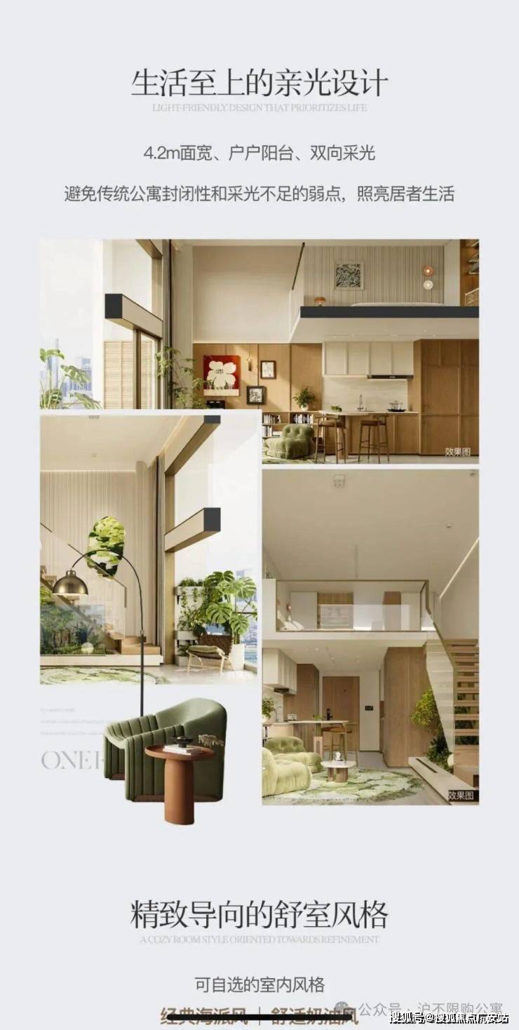 产品创新设计:4.5米挑高空间,双钥匙设计,双向采光通风,动静分区明确,既适合单身白领自住,也可用于以租养贷投资模式