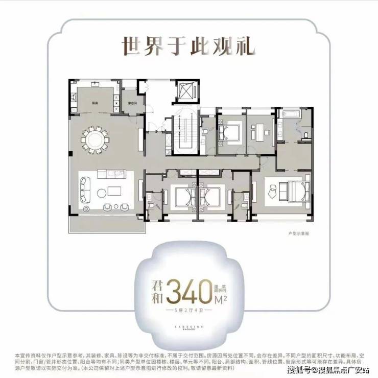 项目共计123套房源,一共11栋楼,户型面积为约285㎡、300㎡、340㎡。