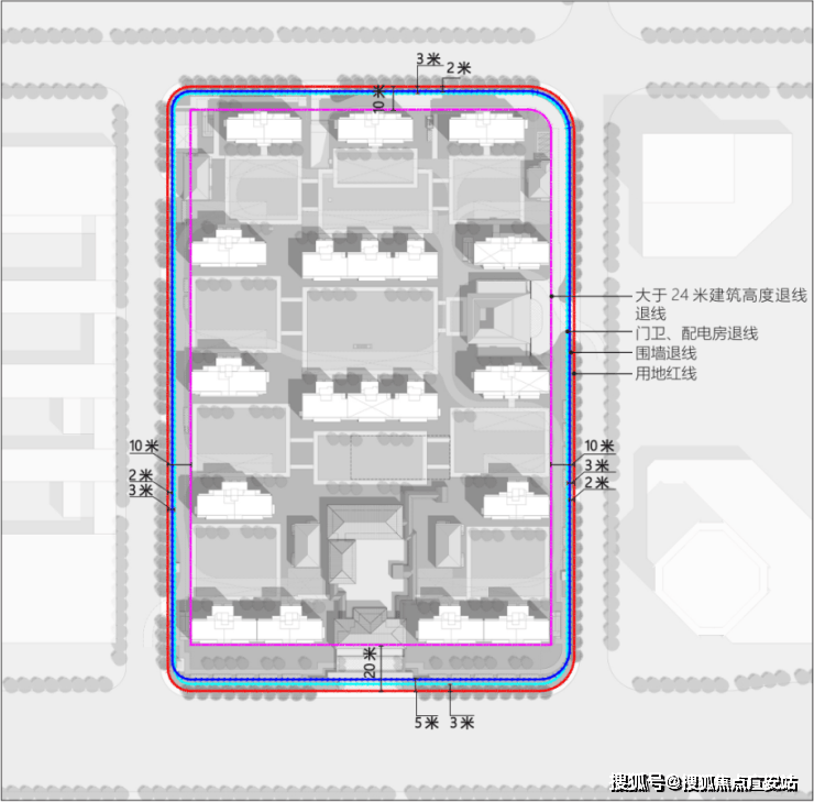 整个项目四向各退红线2-5米,确保了访客车位都停在围墙外,整个小区真正意义上实现了人车分流,是板块首个,不惜成本,主动割肉砸品质的项目。
