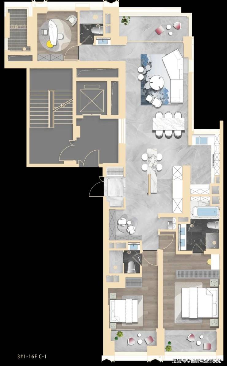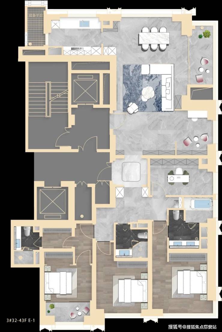 - 1号地块:云端尊邸,俯瞰城市盛景:1号地块由3栋超高层(最高约165米)及1栋小高层组成。