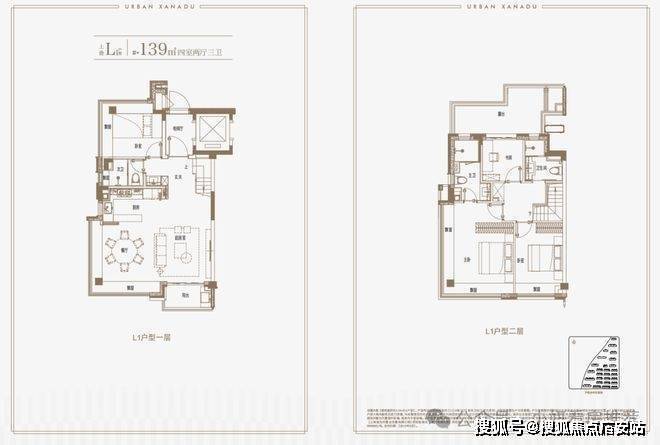 建面约139上叠户型,三层是会客区,四层是居住区,阳台+露台+多个飘窗设计,附加空间非常大,在别墅类产品中实属罕见!