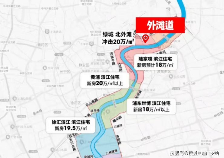 众所周知,上海的顶层规划设计围绕“一江一河”展开。但陆家嘴滨江、黄浦滨江、世博滨江、徐汇滨江的房价,无一不是18-20万/㎡起步。