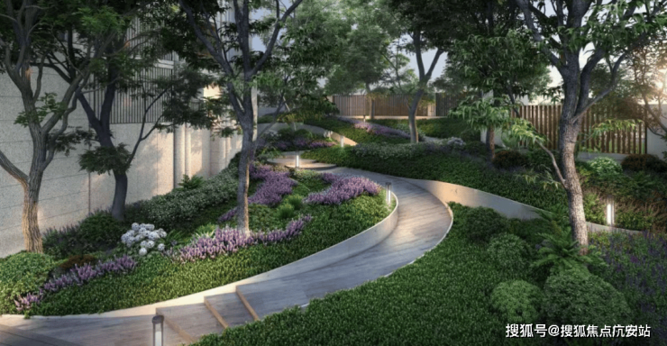 通过多级抬高的坡地,堆坡造园,呈现类似旧金山九曲花街的观感,每一段起伏都是精心设计的场景体验!