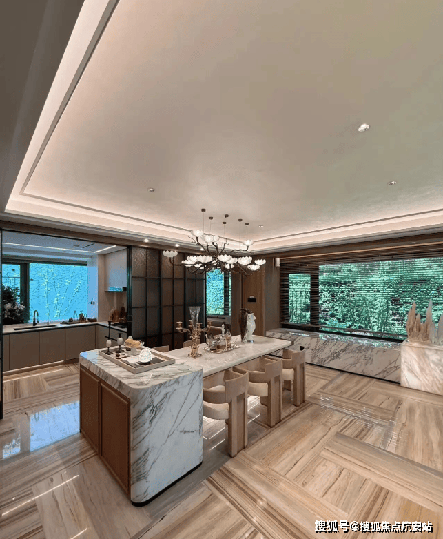 材料 选用 意大利石材,BVLGARI HOTEL大理石,铝型材塑型红, 四层金属网格 墙面以及 梧桐叶金属屏风 等! 打造独属老静安的记忆符号,高奢定制,市区豪宅调性拿捏!
