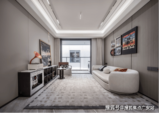 餐厅区域放置一个餐边柜,同样选用了雪山飞狐奢石做透光台面设计,餐边柜在收纳储物方面具有显著作用。