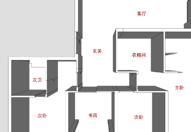 ▽书房的门扇完全开启后与墙面齐平,变成了墙面装饰