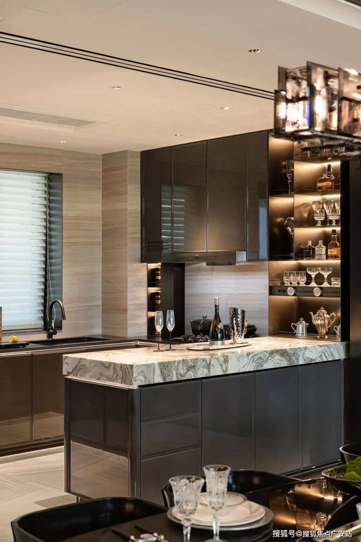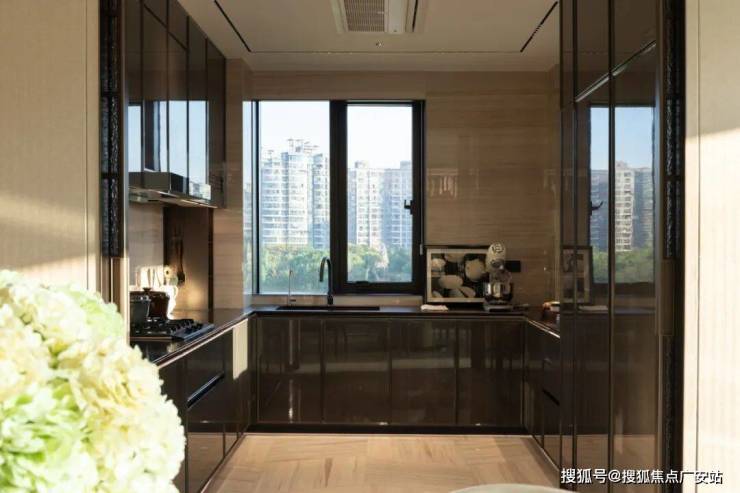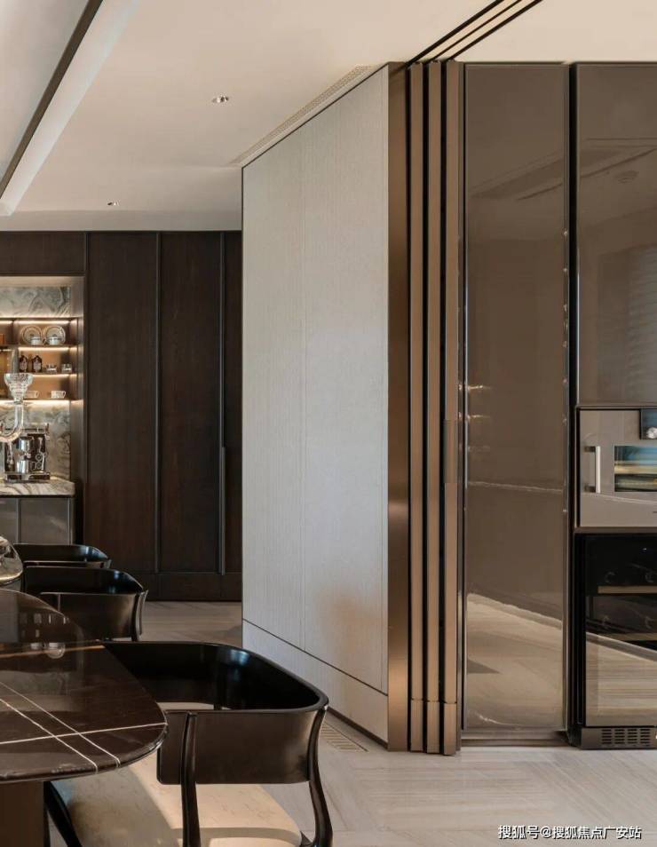 在厨房的优化设计中,设计师将直通阳台的推拉门改为外推窗,在维持空间互动性的同时,为厨房赢得了更多操作台面与储物空间;其次,因功能重复而取消了厨房内部的独立吧台,并将门体改为可完全隐藏入墙的推拉系统。当门扇开启时,厨房与公共区域视觉贯通,极大增强了空间的通透性与家庭成员的互动交流。