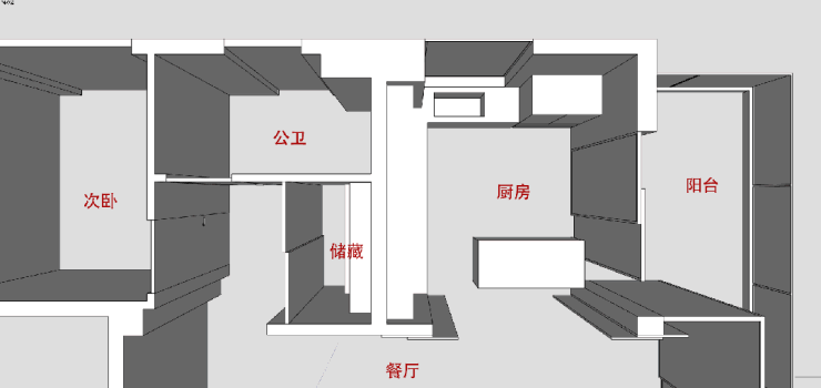 为规避家政间噪音对北向次卧的干扰,设计师将其移至阳台,原位置改造为隐形储物间,扩充收纳功能。关闭时墙面平整统一,还原墙体纯净观感;开启后收纳空间充足,为居家储藏提供便捷。