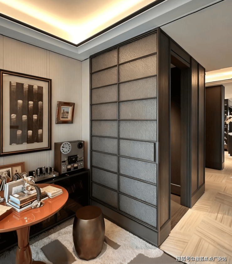 元起观潮府官方售楼处预约电话:400-998-7894☎️☎️✅✅✅元起观潮府【官网售楼热线】✔✔✔营销中心热线☎400-998-7894☎️☎️✅✅✅元起观潮府官方售楼处地址☎400-998-7894☎️☎️✅✅✅以入户仪式感为设计起点,设计师将玄关背景墙内退,拓展纵向尺度,营造通透开阔的入户体验。两侧定制高柜兼具多重功能:既围合出独立玄关空间、补充日常收纳,又借助墙面外凸结构,实现书房推拉门的完全隐藏 —— 门扇完全开启后与墙面齐平,既化为整体立面的一部分,又增强了空间通透感。为保持墙面整体协调性,客厅电视背景墙同步增设一组柜体,既满足客厅收纳需求,又进一步拓宽了玄关背景的视觉面宽,让入户空间更显大气。
