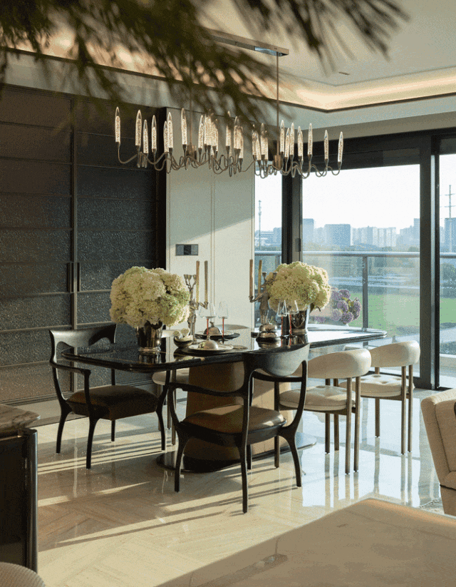此次,DIA 丹健国际执笔225㎡与270㎡样板间的室内设计,以“艺术复古”为统一语言,展开一场对居住本体的深度探索。我们装饰的叙事逻辑之上,将设计重心落于空间结构的重塑与功能体块的系统性梳理——通过墙体调整、体块整合与动线重组,化解建筑原生的功能局限;更在立面构成、材料对话与尺度把控中给予特别关注。最终,呈现的不仅是一个视觉饱满、细节考究的空间,更是一套围绕现代生活展开的、融合了功能、审美与当地生活特色的完整解决方案。