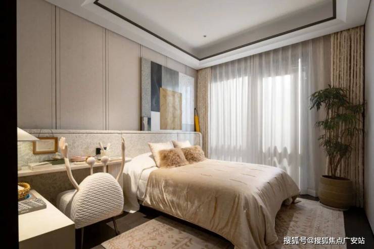其余卧室均以柔和米色调奠定简洁统一基调,借助差异化的软装搭配,营造出多元化使用场景。