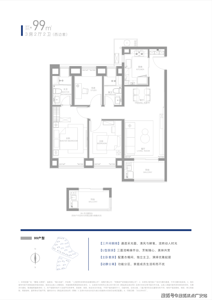 建面约99㎡的3房2厅2卫▼
