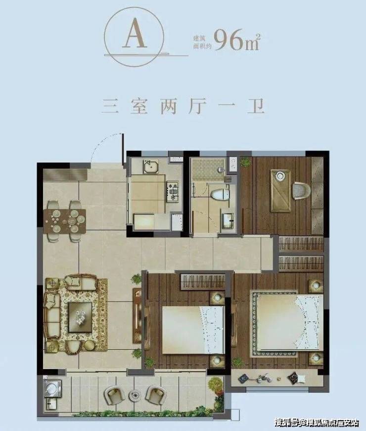 建面约96㎡户型图