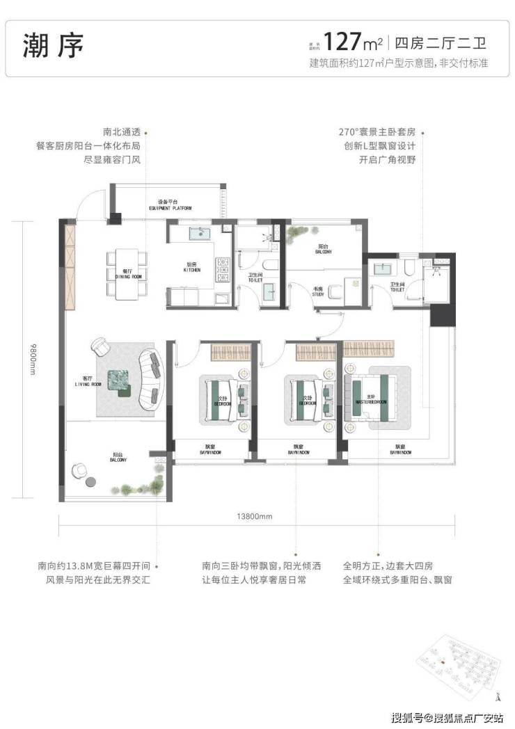 再来看项目的四房户型,有建面约127方、约130方2款。