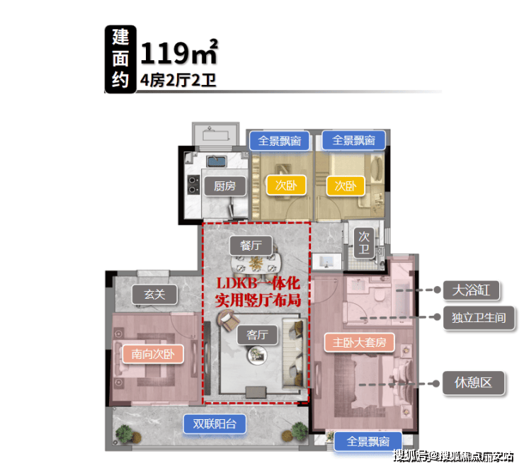 建面约119㎡4房2卫:首改家庭闭眼冲款,功能拉满,住十年不用换