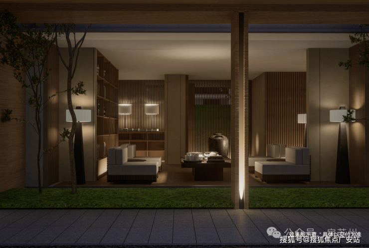 「浅屋低檐苏式雅致」结合运河文化底蕴,以传统苏式中“灰”和“白”作为建筑主色调。立面以简约艺术,摄取现代元素,结合屋面挑檐、大面玻璃,重塑现代立面的中式内涵,著作运河景观大宅新封面。