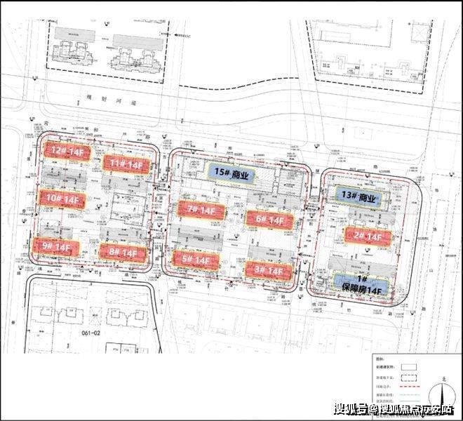 根据规划设计方案显示,项目拟建11幢14F住宅(含1幢保障房)、以及商业、配套用房等建筑。