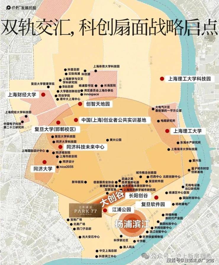 项目名/开发商:推广名保利外滩启(PARK77),备案名观奕雅筑;由央企保利发展控股开发;地处杨浦东外滩CAZ核心(内环内),江浦路与长阳路交汇处。