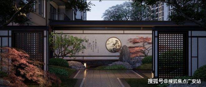 项目采用三段式入户:一进辋川入画(主入口空间),二进:闲庭碎影(戏台庭院),三进:临风听湖(自然庭院)。入户大门屋顶采用唐代“重檐歇山顶”形式配上台基上的唐代建筑标志阑干,入院后有一副唐风画作,其次以亭台楼榭、理水叠山的中国园林意境,重现盛唐大明宫百花争艳,小桥流水,落叶如金的景观。社区景观层层递进,让住户置身其中,体验唐风山水。