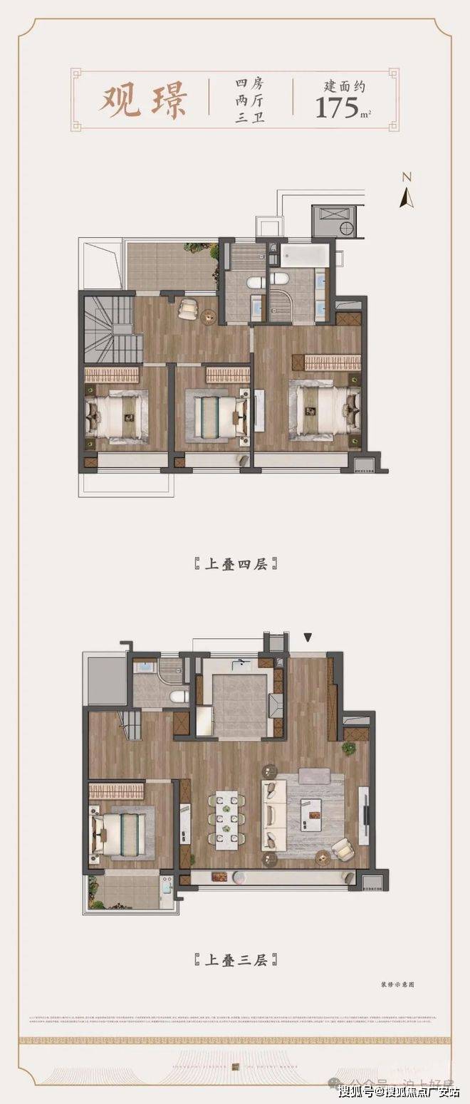 上叠建面约175㎡4房户型▼