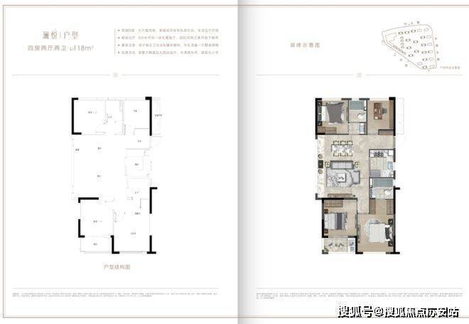 118㎡|澜悦|四房两厅两卫:约118平户型最为惊艳,全部边套设计。如今市面上的四房如果要追求尺度,基本要130平以上;小面积四房,基本是3+1房设计,数字1大多代表的是像储藏间或衣帽间这样的功能房。但湖沁宸园的118平,是完整四房格局,兼具尺度与功能性。