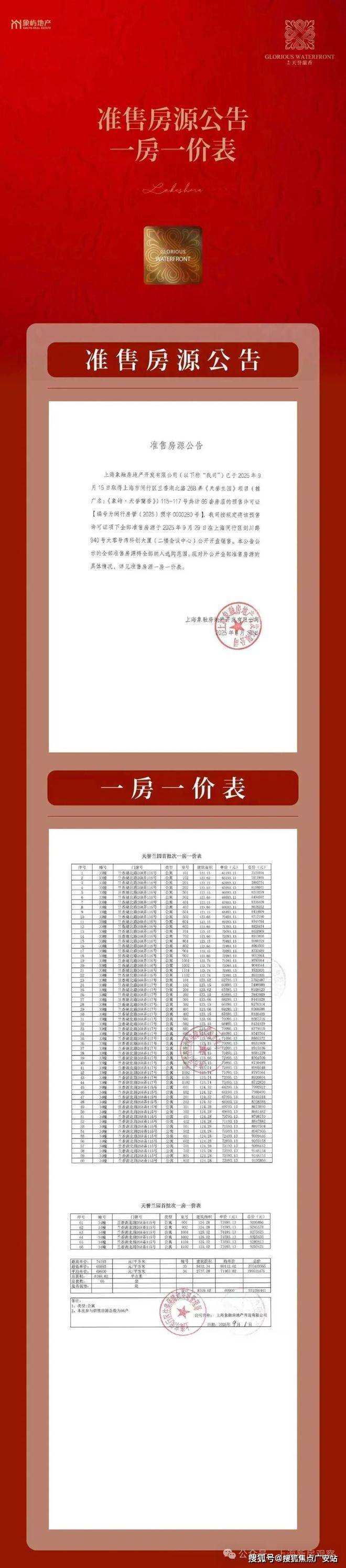 闵行兰香湖畔全新楼盘「象屿·天誉蘭香」样板间已开放!首开66套建面约123-125㎡小高层!均价6.99万/㎡!认购金80万认购时间:9月17日-9月21日往下阅读项目一房一价表!案场预约制看房,请提前来电预约登记