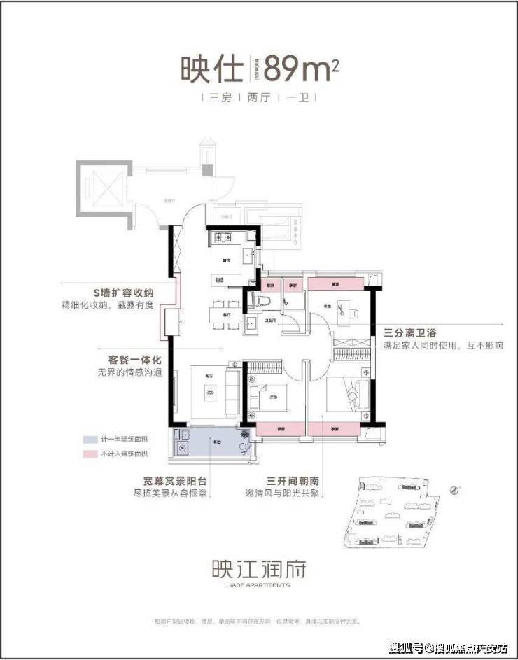 作为华润置地海派3.0作品,映江润府的卷,更在于其硬核的产品力,尤其在户型的设计上,堪称卷到极致。映江润府全盘仅规划89和103两种户型,每个都堪称王炸。