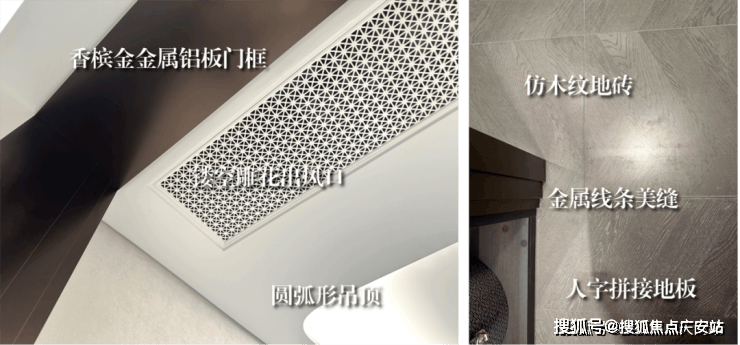还打造了海派雕花出风口、卧室地面鱼骨拼接、卫生间地面复古拼花、香槟金金属铝板门框、金属踢脚线等元素,整个海派美学居住空间精致有腔调~