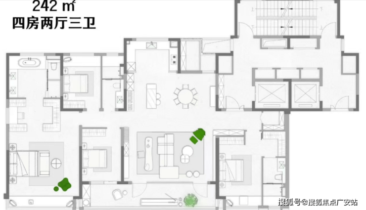 户型配置:建面约155/185/240㎡,全系大平层