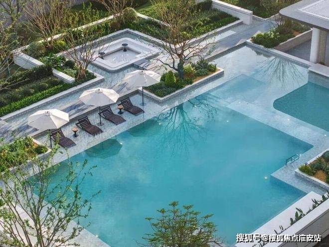 又如,园林景观方面融合各种类型的植被、观景会客厅、大面积镜面水景、曲苑回廊等,打造难得一见的诗意园境。