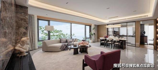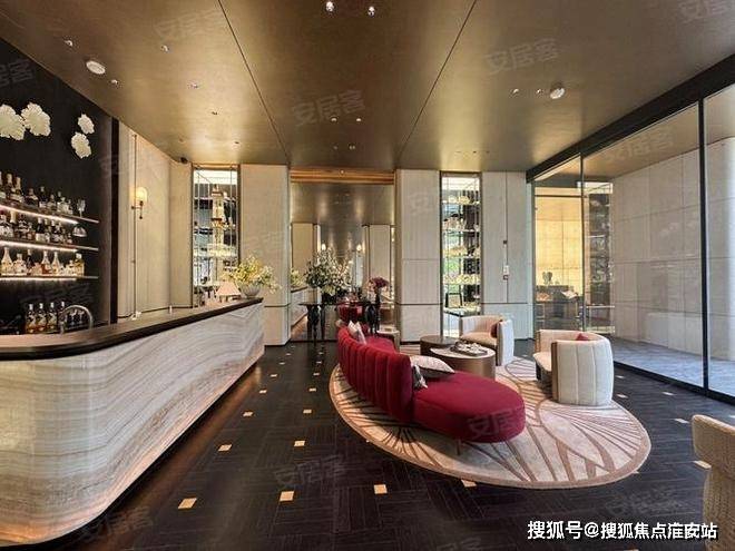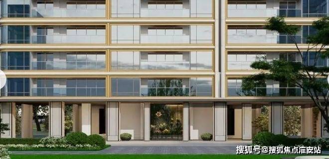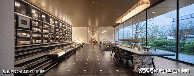 还有挑檐设计的架空层泛会所、地下车马院、艺术长廊,以及贝金米黄石材、水纹玻璃、海浪灰花岗岩、约12m通高落地玻璃……