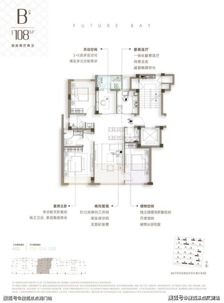 建面约108方户型: