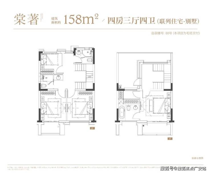 产品稀缺:纯别墅社区规划避免"高低配"混居,141户全为毛坯交付别墅,联排158-165㎡(地上三层+地下空间),叠墅139-142㎡(上叠观景、下叠庭院)